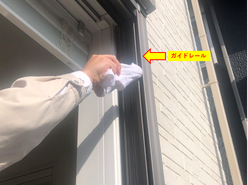④ガイドレール部分以外にスプレーが付きましたら、ホコリが付着しますので早急に拭きあげましょう。